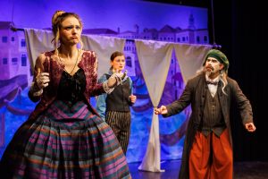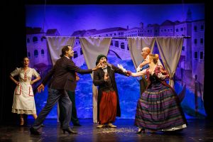 Carlo Goldoni’s The Servant of Two Masters is arguably his most well-known play, with translations in 30 different languages, including many English translations. So, do we really need another one? Probably not. So why do it? Good question. A possible answer is, “Because PJ Escobio asked me to.” But the most honest answer is that I wanted to see if I could. I wanted to see if I could create a translation that was informed by my 20 years of studying and performing commedia dell’arte. Most of the translations that I have come across are either a very dry literal translation, a modernization of the play, such as One Man Two Guvnors, or an adaptation of the 1947 Georgio Strehler production, which has been running for over 74 years. Goldoni wrote Servant in 1746 at the request of the famous commedia actor, Antonio Sacco (sometimes Sacchi). This early version provided many opportunities for Sacco to use his improvisational skills. Then, in 1789, Goldoni revised the play, taking out all the improvisation sections, and that is the version we have today. (It’s interesting to me that Goldoni is credited for both coining the term Commedia dell’Arte and for the demise of commedia by removing the masks and improvisations from the art form.) While in this production, there still aren’t large swaths of improv, our approach to the text was preceded by a week-long workshop on Commedia dell’Arte. Our rehearsals were filled with play and experimentation, all informed by commedia. The result is a new and lively adaptation that honors the traditions of the past.