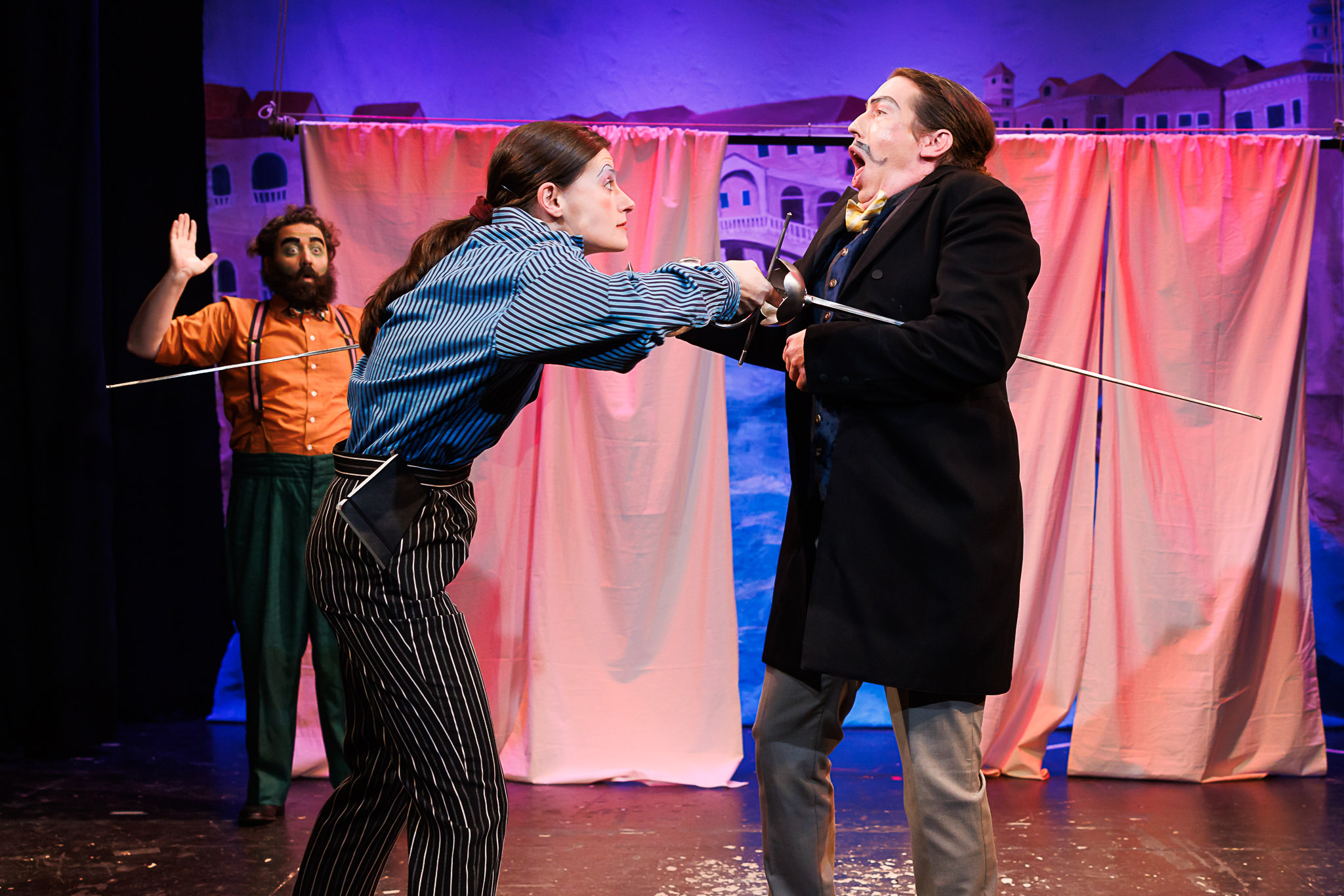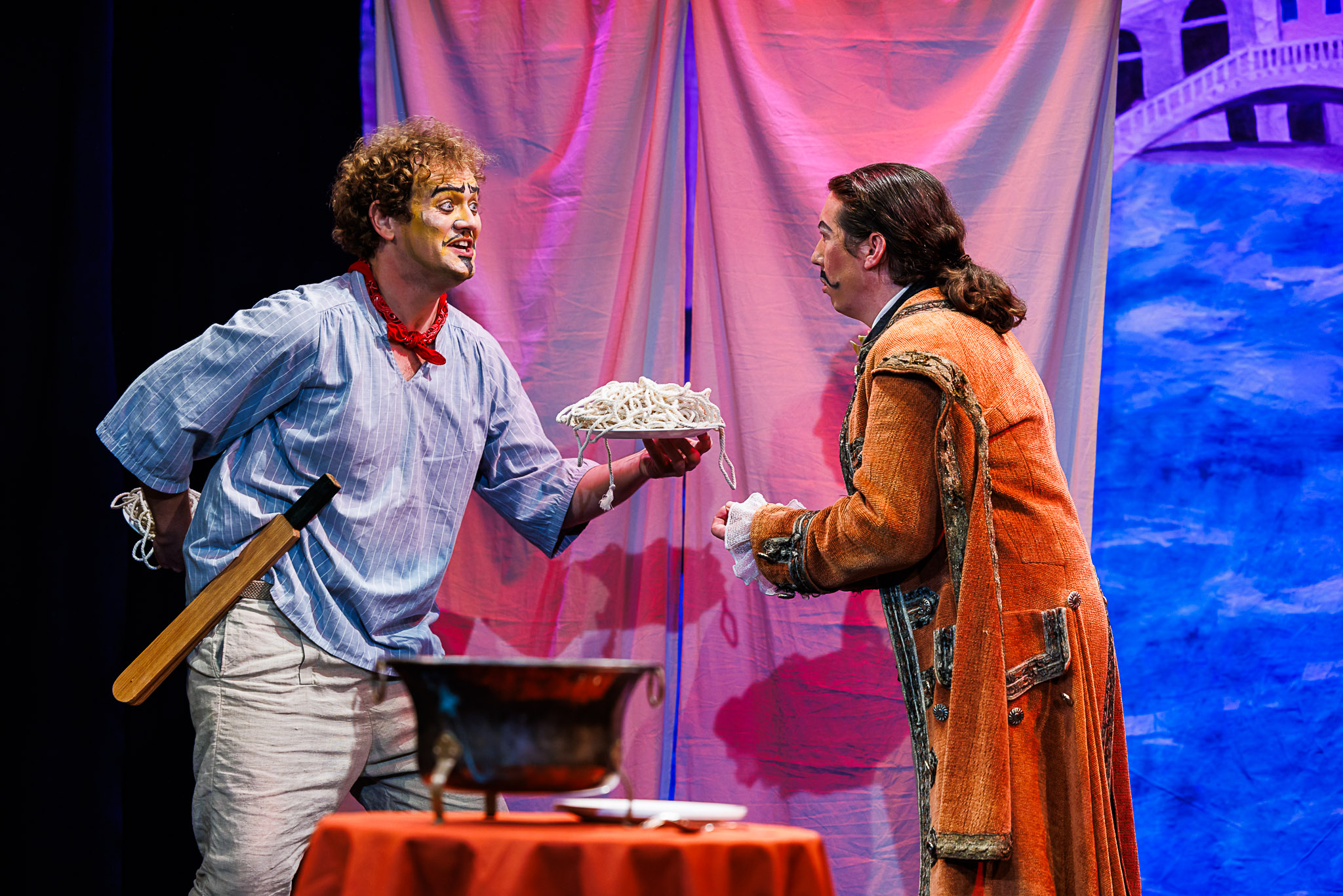 Carlo Goldoni’s The Servant of Two Masters is arguably his most well-known play, with translations in 30 different languages, including many English translations. So, do we really need another one? Probably not. So why do it? Good question. A possible answer is, “Because PJ Escobio asked me to.” But the most honest answer is that I wanted to see if I could. I wanted to see if I could create a translation that was informed by my 20 years of studying and performing commedia dell’arte. Most of the translations that I have come across are either a very dry literal translation, a modernization of the play, such as One Man Two Guvnors, or an adaptation of the 1947 Georgio Strehler production, which has been running for over 74 years. Goldoni wrote Servant in 1746 at the request of the famous commedia actor, Antonio Sacco (sometimes Sacchi). This early version provided many opportunities for Sacco to use his improvisational skills. Then, in 1789, Goldoni revised the play, taking out all the improvisation sections, and that is the version we have today. (It’s interesting to me that Goldoni is credited for both coining the term Commedia dell’Arte and for the demise of commedia by removing the masks and improvisations from the art form.) While in this production, there still aren’t large swaths of improv, our approach to the text was preceded by a week-long workshop on Commedia dell’Arte. Our rehearsals were filled with play and experimentation, all informed by commedia. The result is a new and lively adaptation that honors the traditions of the past.